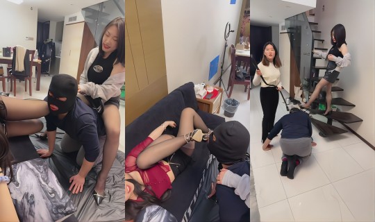 三美女暴力耳光口水