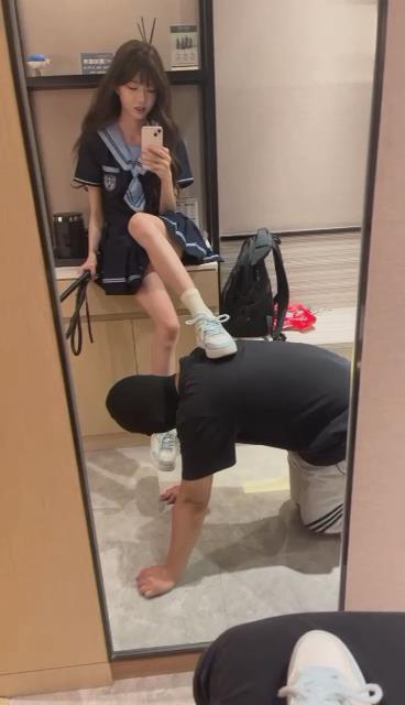 【青岛00后学生】绿帽狗,首次伺候情侣主舔鞋底