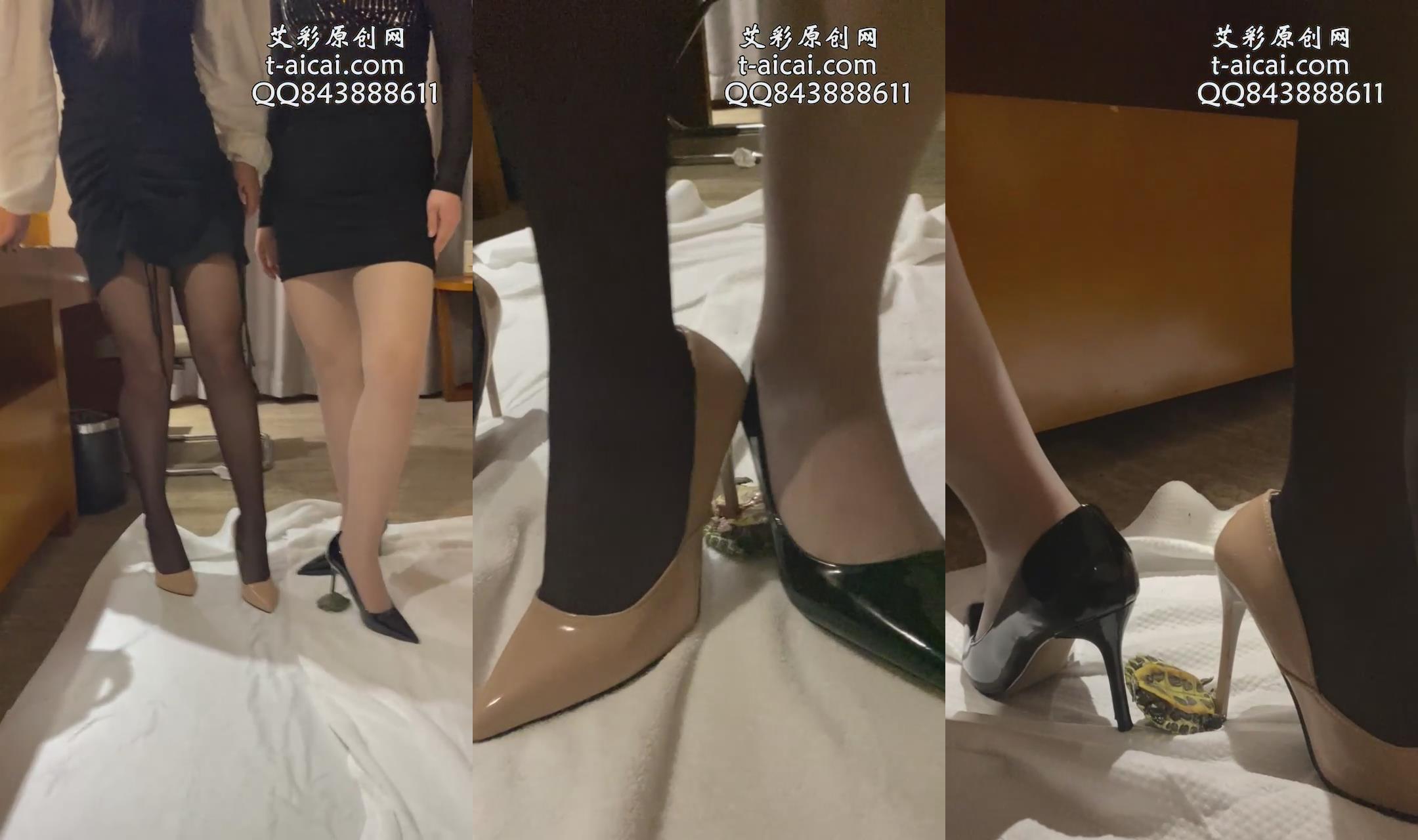 俩女比基尼高跟鞋里脚跟踩,鞋跟插金鱼