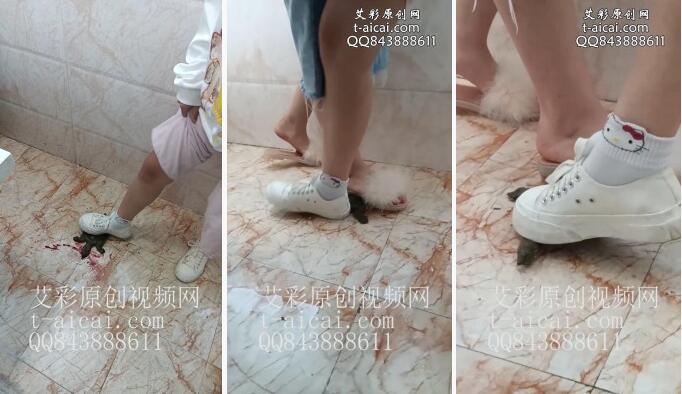 高中生两萝莉白鞋高跟暴踩龙虾